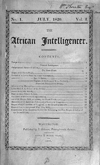 En 1820, l’abolitionniste Jehudi Ashmun, l’un des fondateurs du Libéria, créa The African Intelligencer, vendu sous forme de brochure et de journal à informer les Noirs libres sur l’histoire, la géographie et d’autres détails relatif à la traite des esclaves.