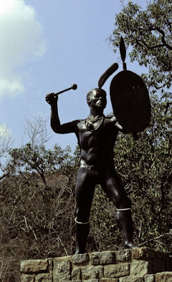 | Statue représentant le chef Nyabela dans un geste de combat qui exprime l’acte de résistance héroïque et l’unité du peuple ndebele |